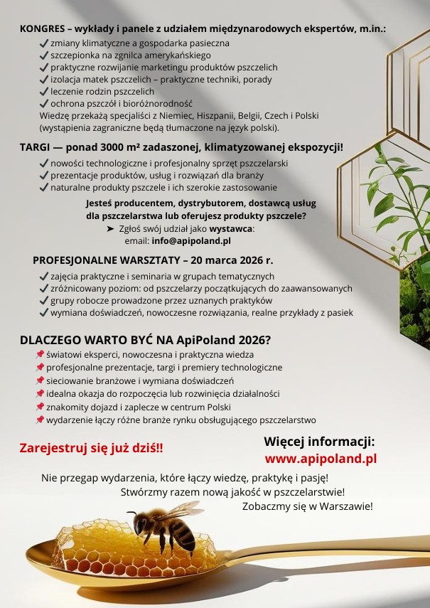W dniu 7 marca 2026 r. o godz. 11:00 (po zebraniu członków Koła) odbędzie się wykład prof. Surowca pt. „Zwalczanie warrozy metodą ultradźwiękową”, połączony z prezentacją emitera sonicznego. Serdecznie zapraszamy wszystkich zainteresowanych do udziału w wydarzeniu. Miejsce: siedziba CIOP, ul. 3 Maja 28, Legionowo