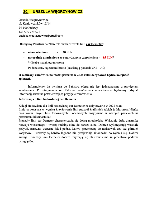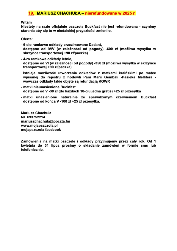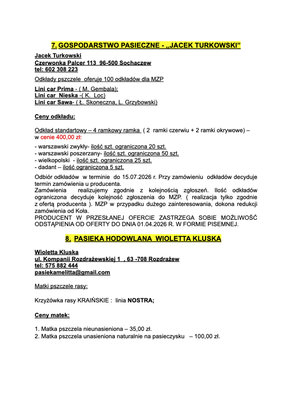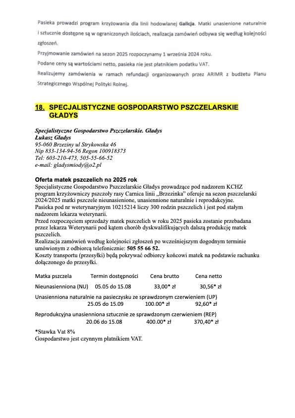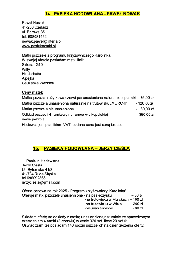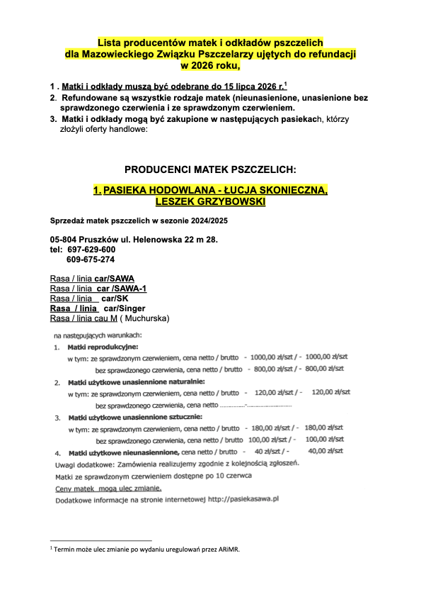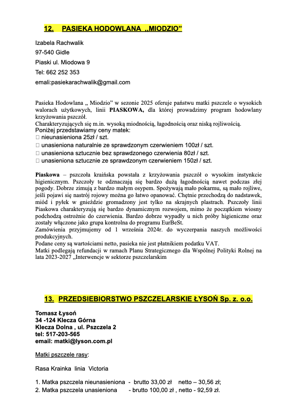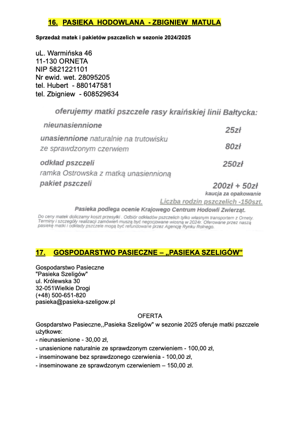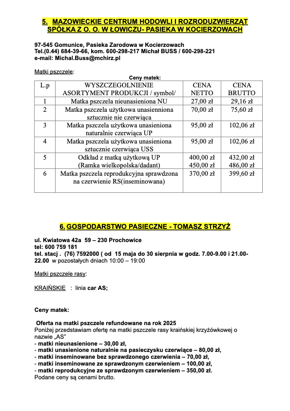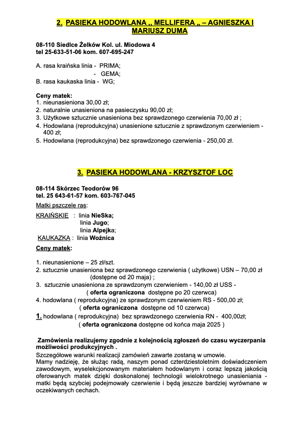 LISTA PRODUCENTÓW MATEK I ODKŁADÓW PSZCZELICH Wybór należy do ciebie… Lista producentów matek i odkładów pszczelich